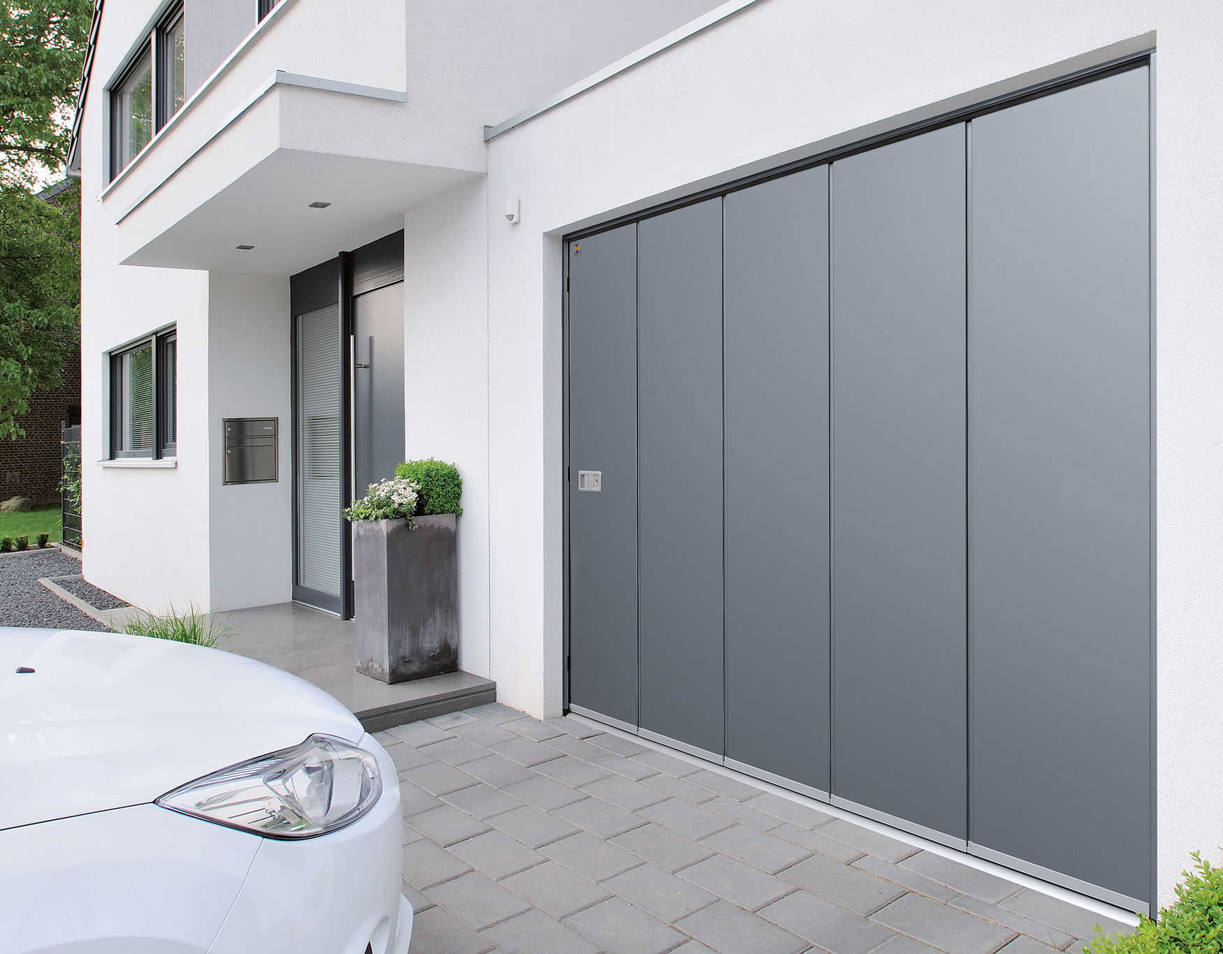 I portoni sezionali a scorrimento laterale Hörmann rappresentano un’importante alternativa al tradizionale portone sezionale a soffitto. Ad esempio, scegliere un portone sezionale a scorrimento laterale può essere la migliore soluzione qualora si abbia la necessità di mantenere sgombro il soffitto del box per ragioni costruttive (es. presenza di tubi di scarico o peculiare pendenza del tetto).